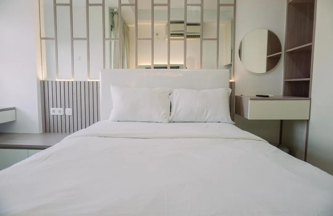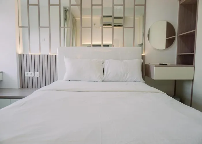 The 1-room Homey And Cozy Stay Studio Belmont Residence Puri Apartement By Travelio Jakarta is around 20 minutes' walk from the Museum of Modern and Contemporary Art in Nusantara. Guests can take a dip in an outdoor swimming pool to relax after a long day.